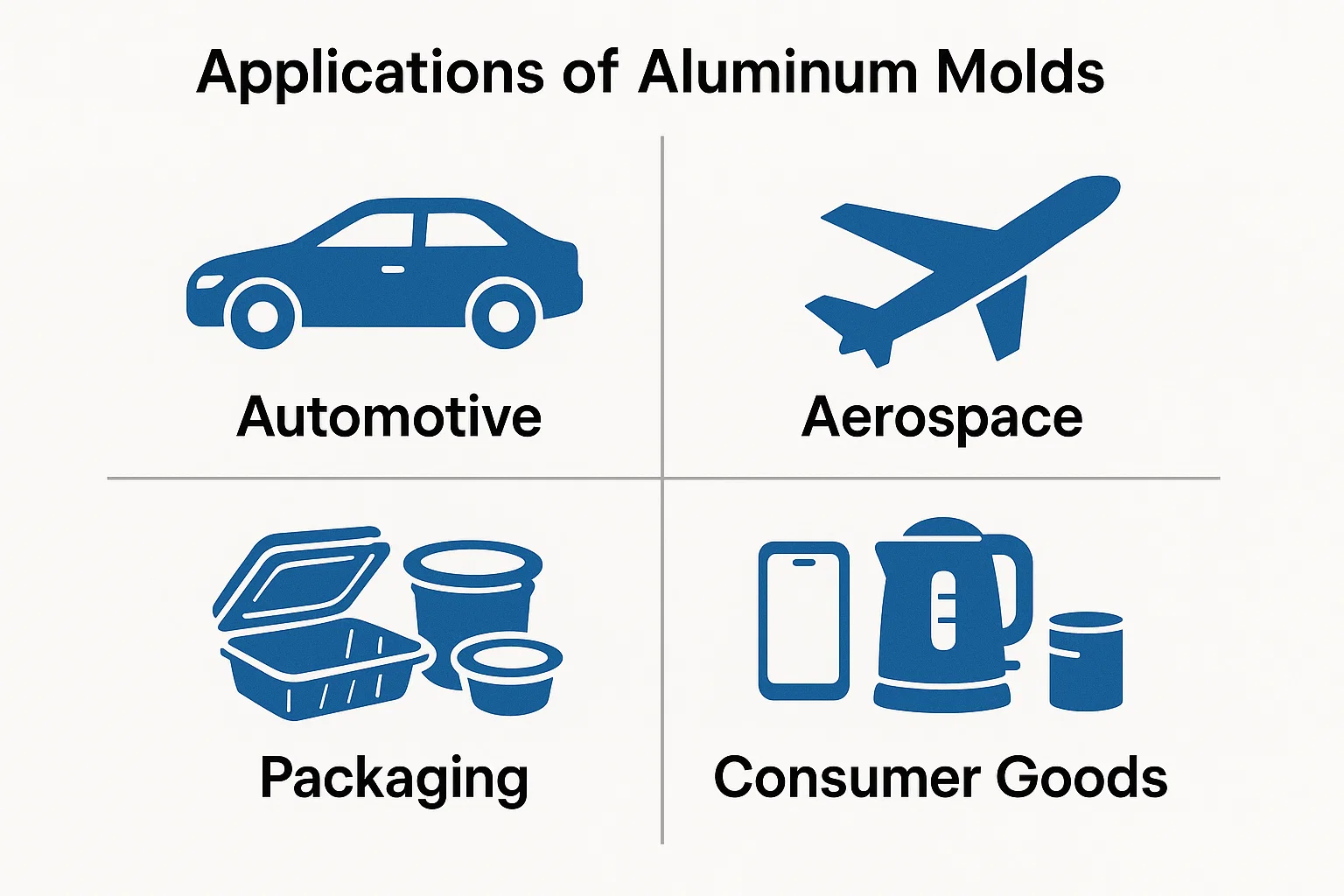Aluminiumsformer har funnet veien inn i et mangfoldig utvalg av bransjer, drevet av behovet for raskere, mer kostnadseffektive og tilpasningsdyktige produksjonsprosesser. Deres unike egenskaper gjør dem til et foretrukket valg for selskaper som ønsker å effektivisere produksjonen og bringe nye produkter raskt til markedet.