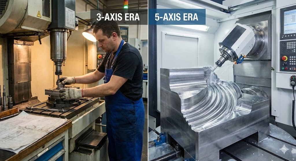 Utviklingen mot 5-akset skjæring representerer et paradigmeskifte i hvordan vi nærmer oss formdesign . I motsetning til 3-akse maskiner, beveger 5-akse sentre et verktøy eller en del på fem forskjellige akser samtidig (X, Y, Z, pluss A- og B-rotasjonsaksene).